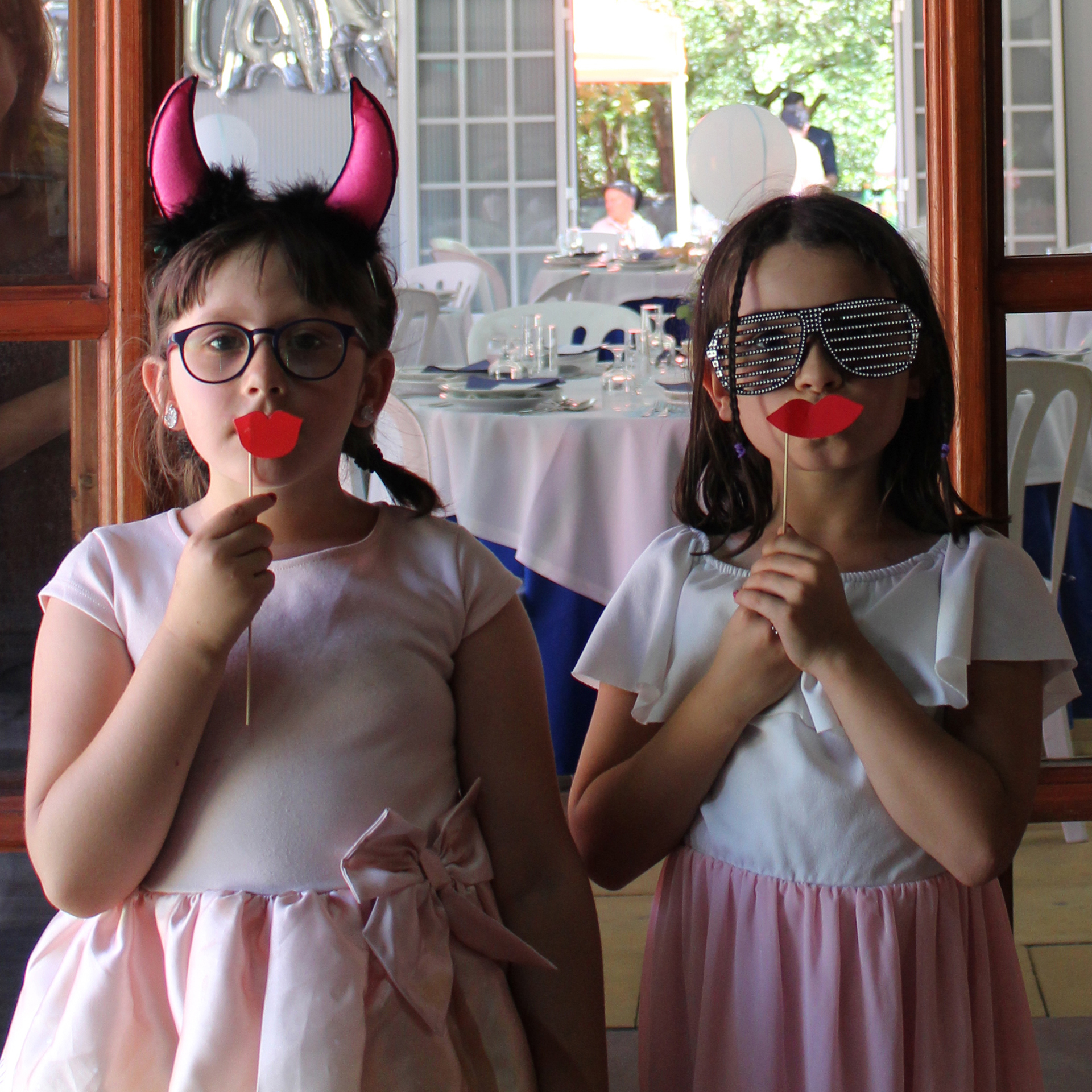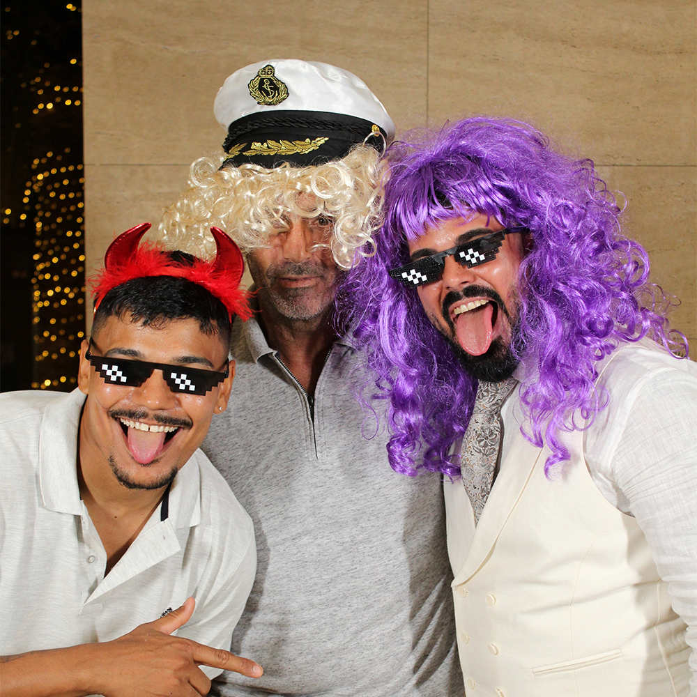 Os teus convidados colocam-se em frente da Photobooth utilizando os adereços disponibilizados para o evento