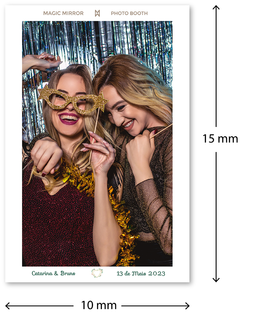 A nossa Photobooth inspira-se no conceito de espelho mágico. Em frente dele permite tirar fotografias, gifs animados, boomerang e videos.